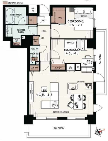 ■2LDK+W+SIC 63.68m2