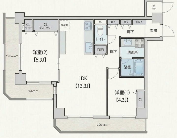 ◎2LDK・56.41m2