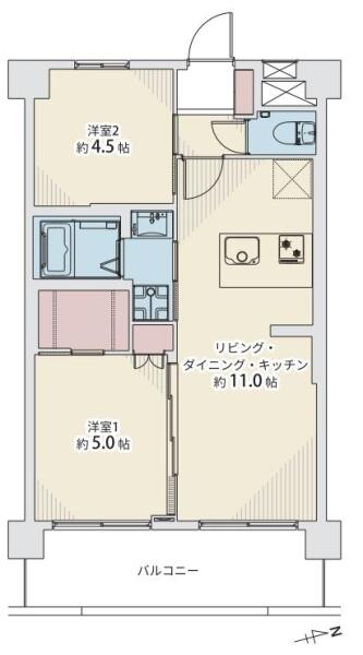 約11帖のLDKに加え、2室を確保した2LDKプラン。