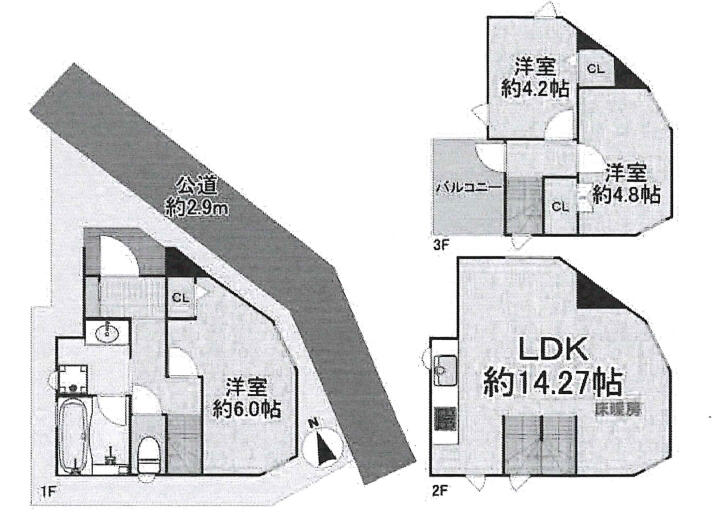 ・洋室 約6.0帖/約4.8帖/約4.2帖