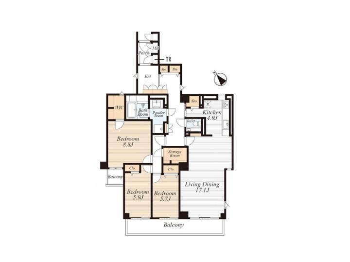 〇バルコニー面積:13.58m²(約4.10坪)〇間取り:3LDK+N+WIC