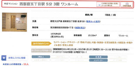 大好評売出中の「西新宿カーネル」ですが、お気に入り登録(保存)が11人になりましたー!